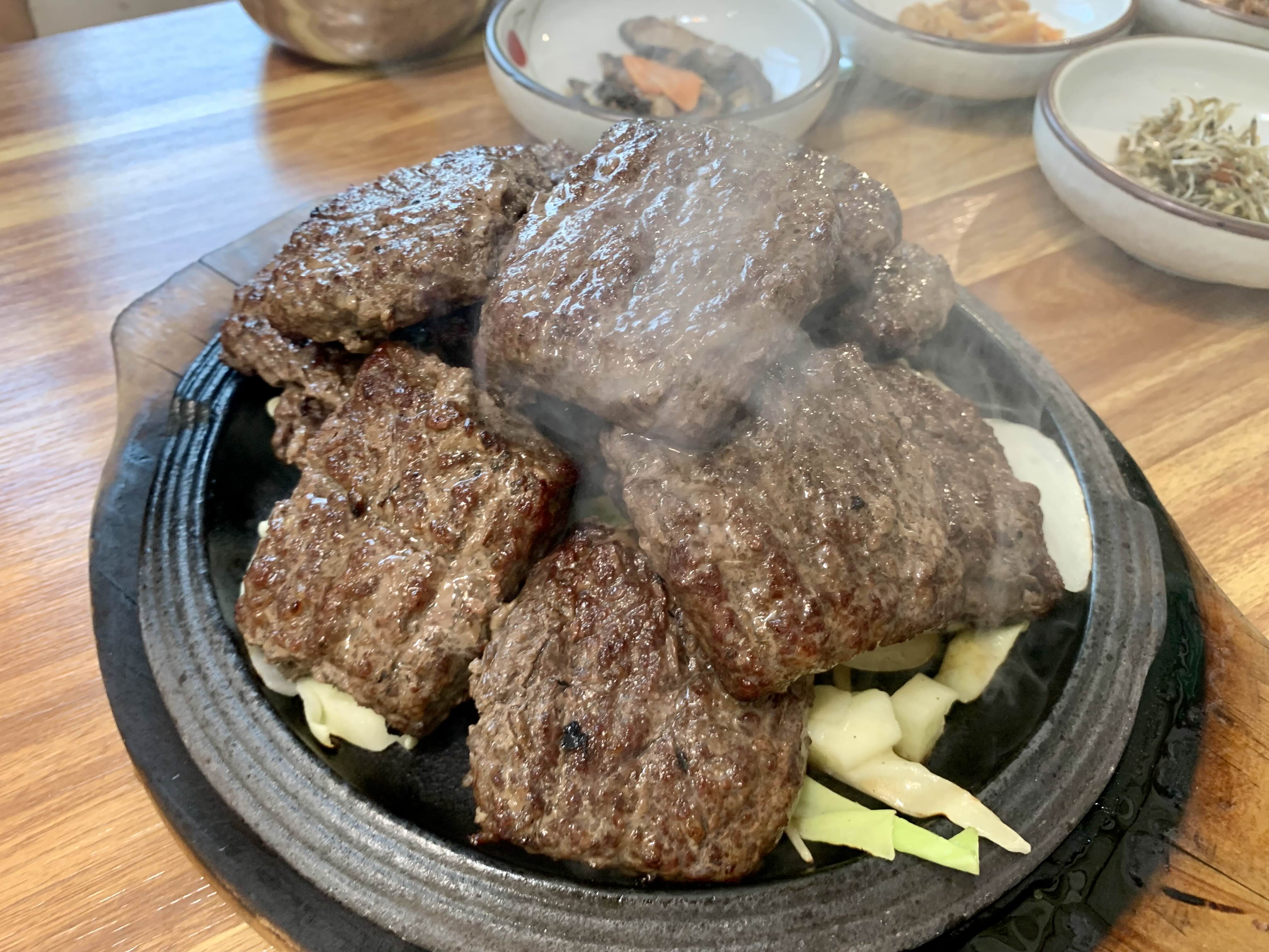 신식당의 떡갈비는 질 좋은 한우를 사용해 매일 신선하게 다진 고기로 만든다는 게 포인트. 한입 베어물면 육즙이 가득 차올라 입안이 행복해집니다. 과한 양념 없이 고기 본연의 맛이 살아있고, 숯불 향이 은은하게 퍼지죠.